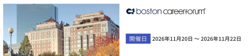 ボストンキャリアフォーラム2026は11月20-22日に「ハインズコンベンションセンター 」で開催されることが公開されました。