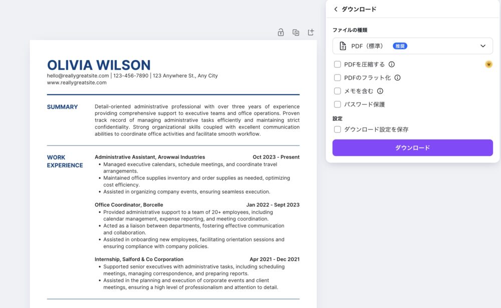 AIによって作成した英文レジュメの内容は、最終的にはPDFフォーマットにして企業の採用担当者に提出する必要があります。