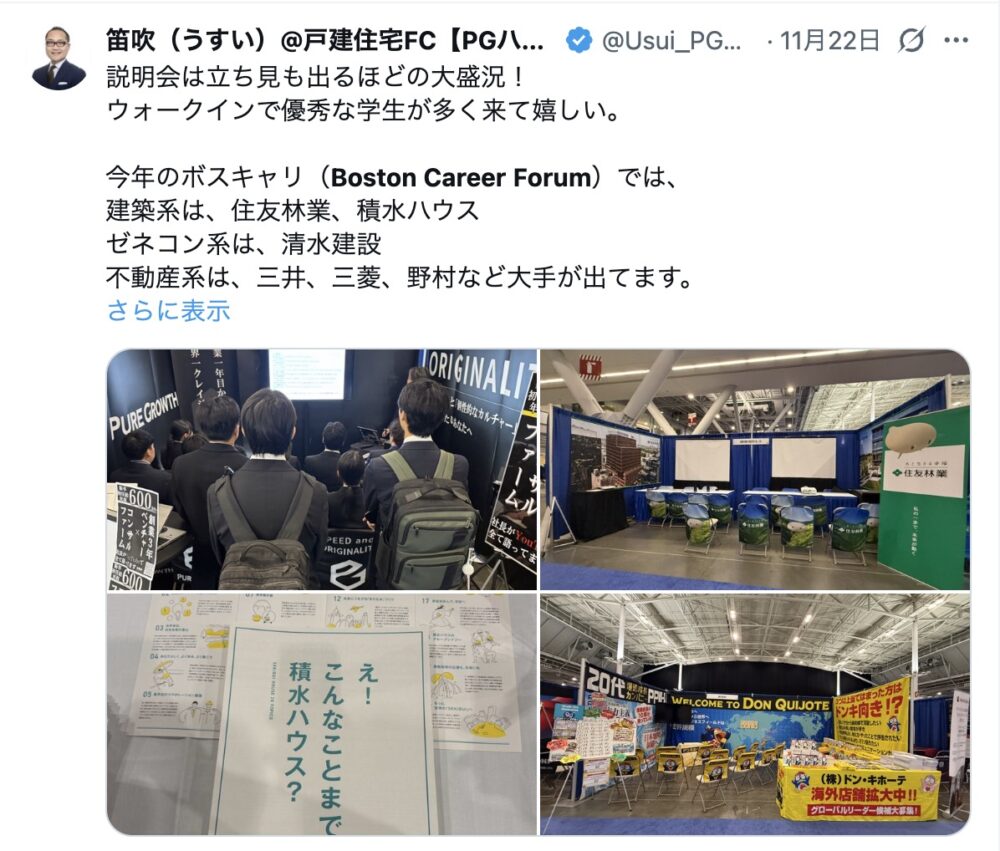 この一文から分かる通り、主催企業であるディスコ社も過去の実績から、事前応募で面接予約を入れている学生の方が圧倒的に有利であると考えていることは肝に命じておくべきかと思います。 企業からすると、数百万から数千万の投資が必要になるボストンキャリアフォーラムで、博打のようなウォークインに大きな期待をかける事はリスクが高いため、どうしても事前に面接予約をしている学生たちが内定をし易い仕組みになっているわけです。